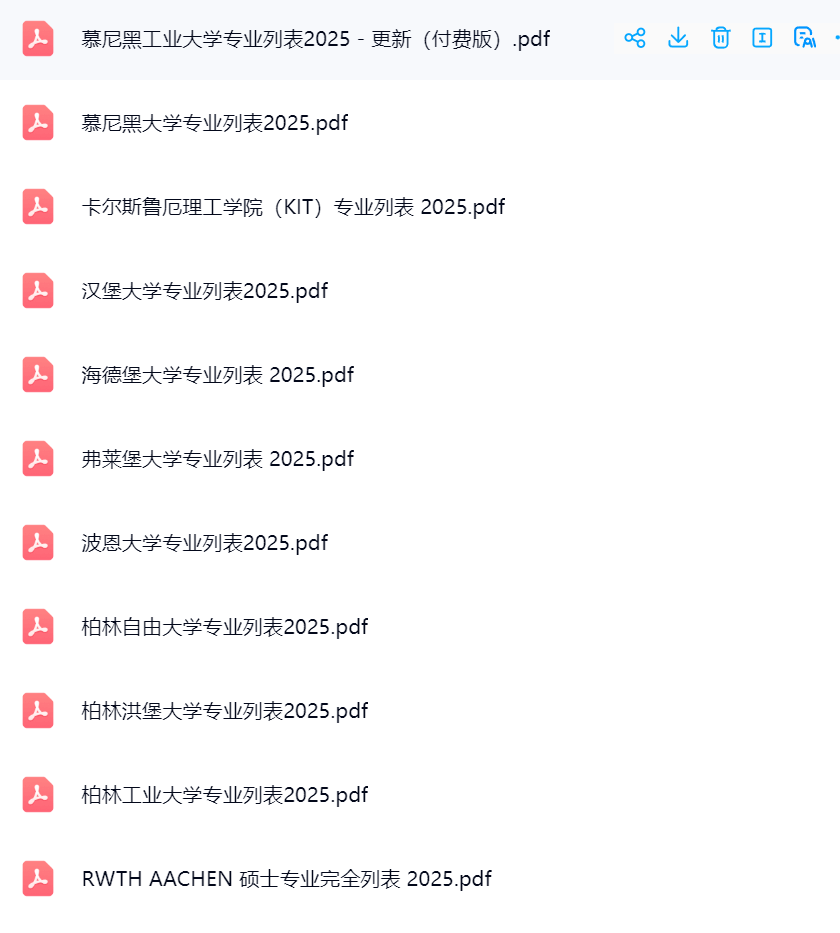 点击这里,可以获取付费版德国大学专业列表文件夹,目前包含了11所德国大学。该文件夹将持续更新,未来将添加更多学校,你可以随时查看此文件夹。