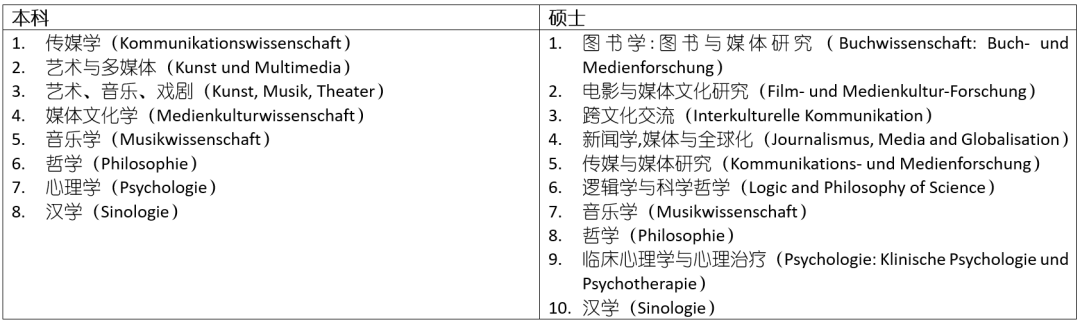 国内的同学比较常申请的一般是经济学、企业管理、对外德语、跨文化交际、哲学、自然科学类的专业。