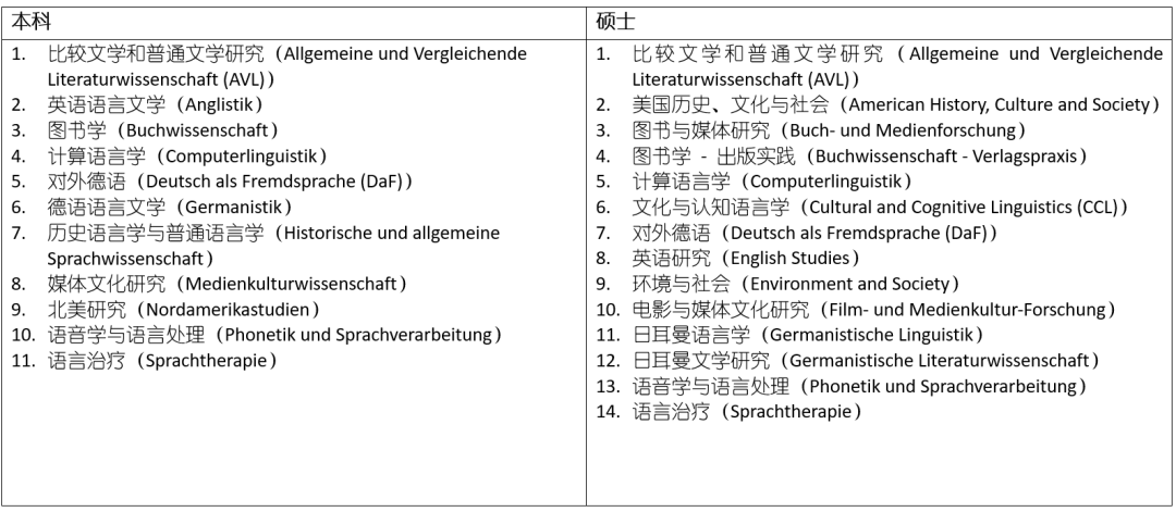 比如,如果你在国内学的是德语专业,我们首先想到的能申请的可能就是DaF或者Germanistik专业,但如果你仔细去了解慕尼黑大学开设的专业后,你会发现,或许还有更多可选专业,比如: