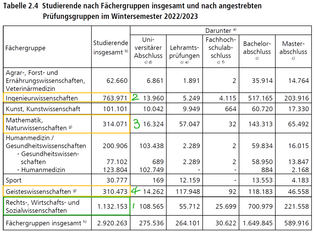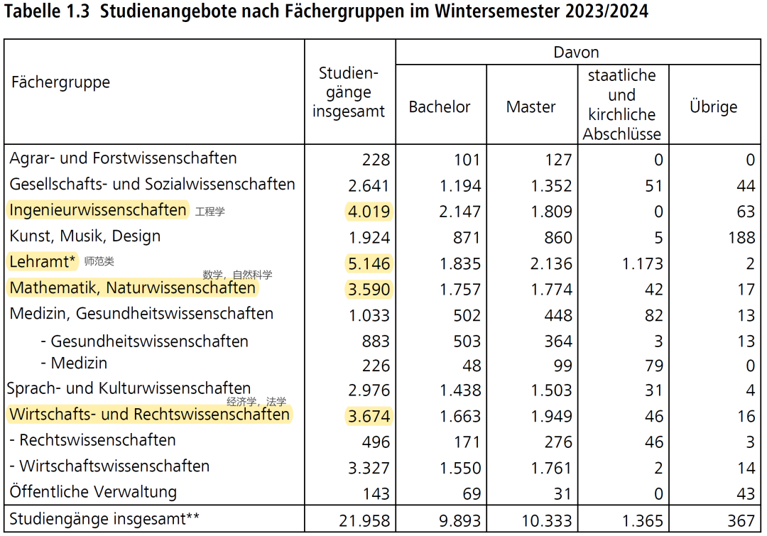 德国大学校长联席会议(HRK)在去年10月份公布了2023年德国高校专业及学生数量概况。我们一起来看看吧!