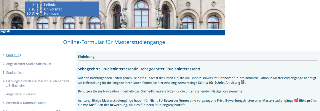 汉诺威大学从去年来一直致力于推出新的学校申请系统,在去年冬季学期的时候,个别专业就是通过新的网申系统申请,例如物理学硕士、景观建筑硕士、以及环境工程硕士等专业。