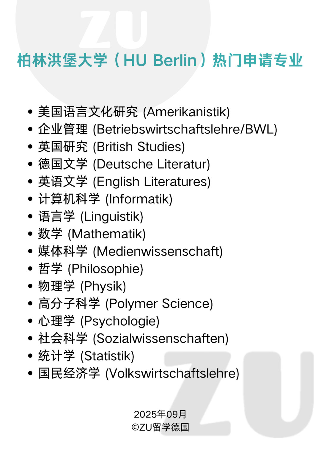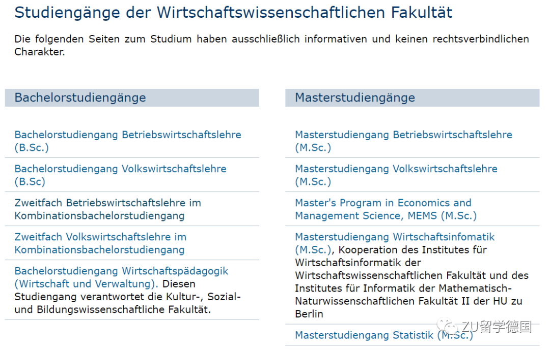*不包括法学院、神学学院、夏利特医学院的专业介绍。