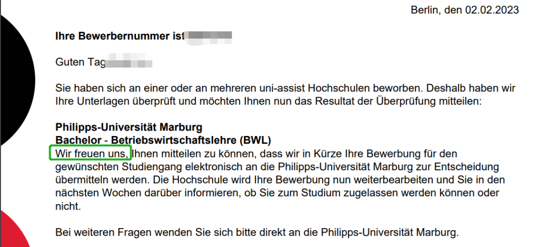 通过uni-assist(UA)提交完申请后,UA将审核你的申请是否准确,审核内容主要包括两个方面: